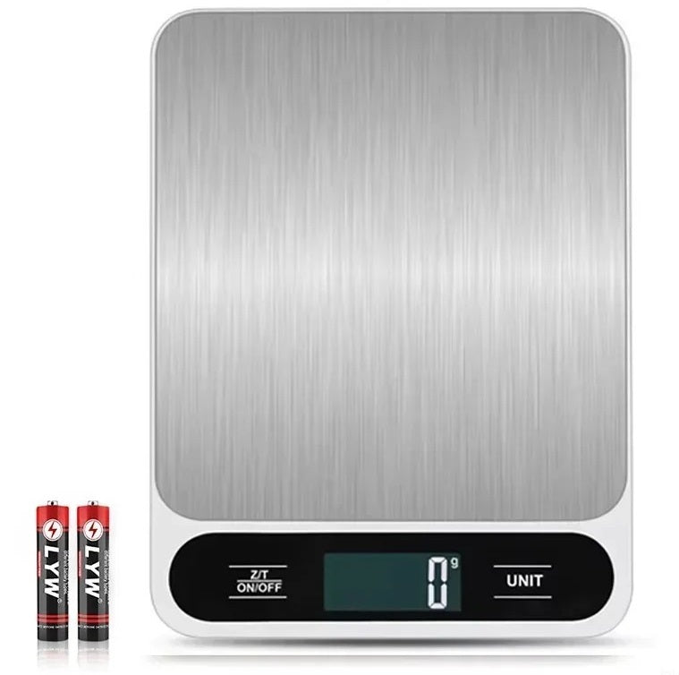Digital kitchen scale with a 10 kg capacity and 1 g precision.